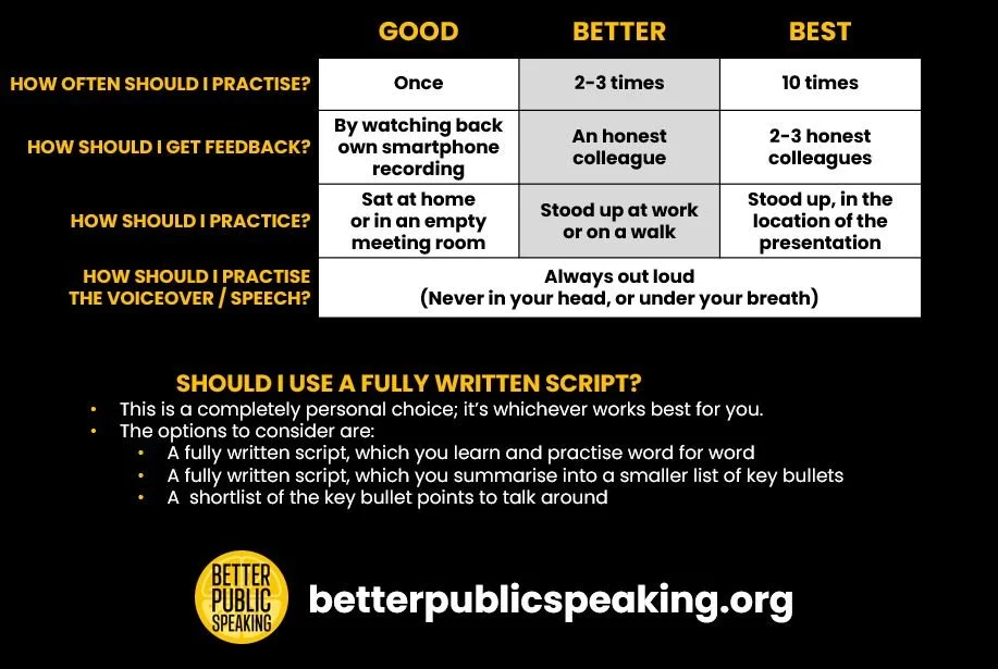 How to practise a presentation or speech.